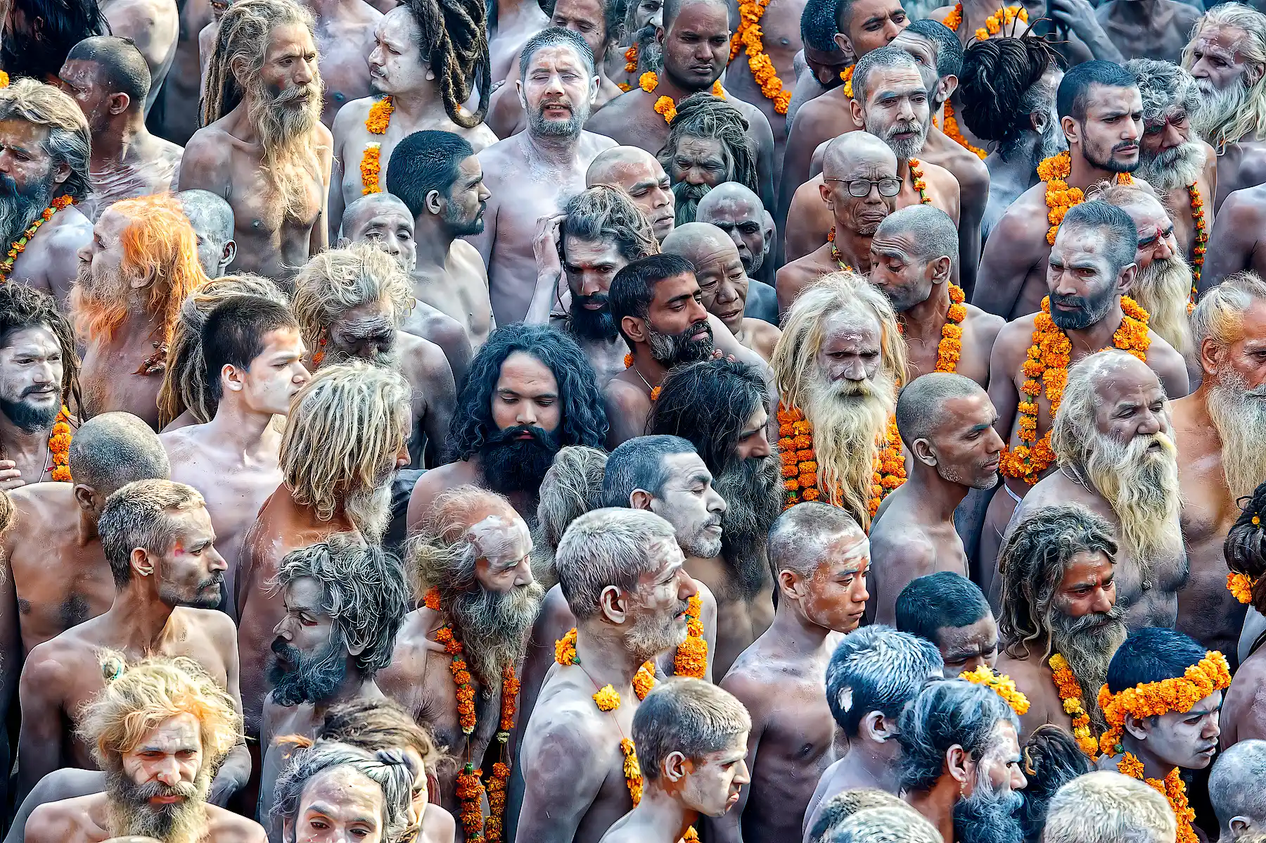 Hundreds of Naga Sadhus gathered in the compound of Maya Devi Temple, befoe going in a procession to take a holy dip in the ganges.
