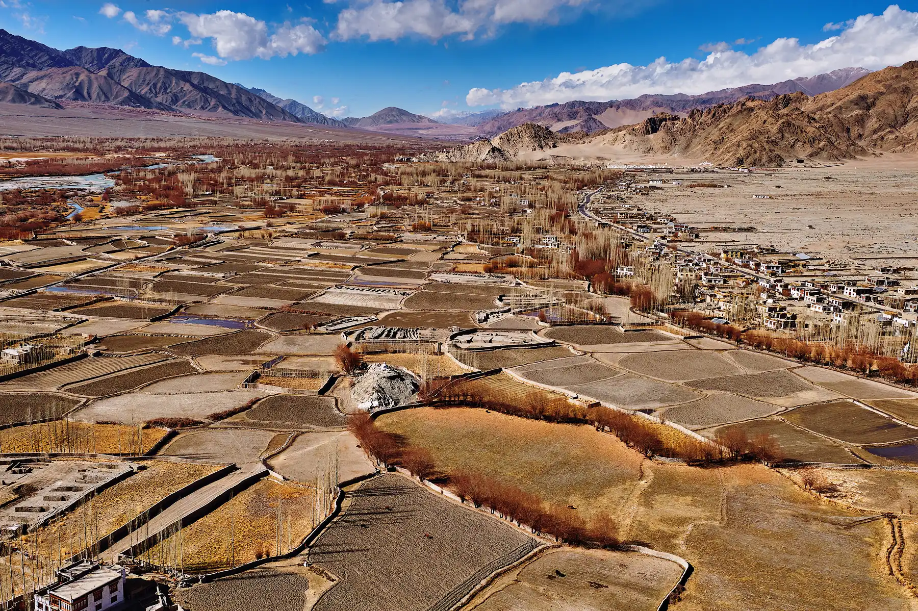 Landscape on the northern side of village Thiksey as seen from the top of Thiksey Monastery.
